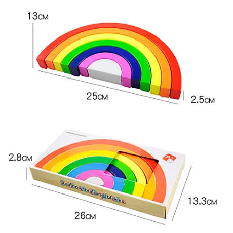 El arco iris Waldorf es un juguete de madera no estructurado que permite a los niños desarrollar su imaginación y creatividad. Este juguete ayuda a los niños a mejorar su concentración, razonamiento, coordinación de movimientos, coordinación mano-ojo, psicomotricidad fina y organización espacial.