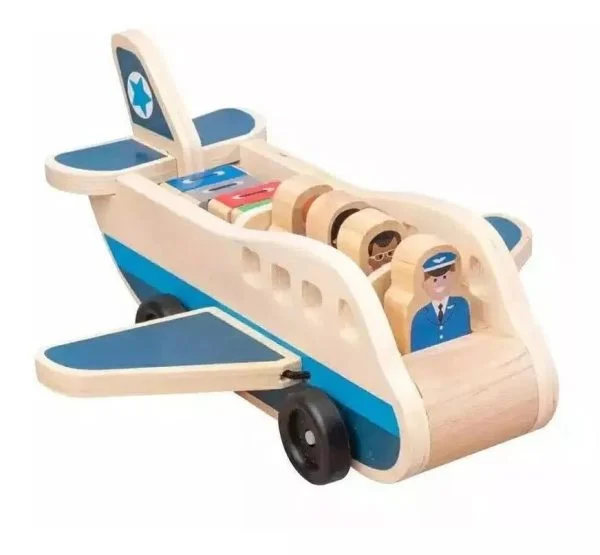 ✈️ Avión de Madera con pasajeros y maletas – Juego de Rol ✈️