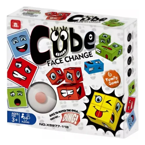Contenido del juego: 16 cubos (4 cubos de cada color); 72 cartas que representan diversas expresiones faciales; 1 campana para añadir dinamismo al juego e instrucciones ilustradas para facilitar el entendimiento del juego.