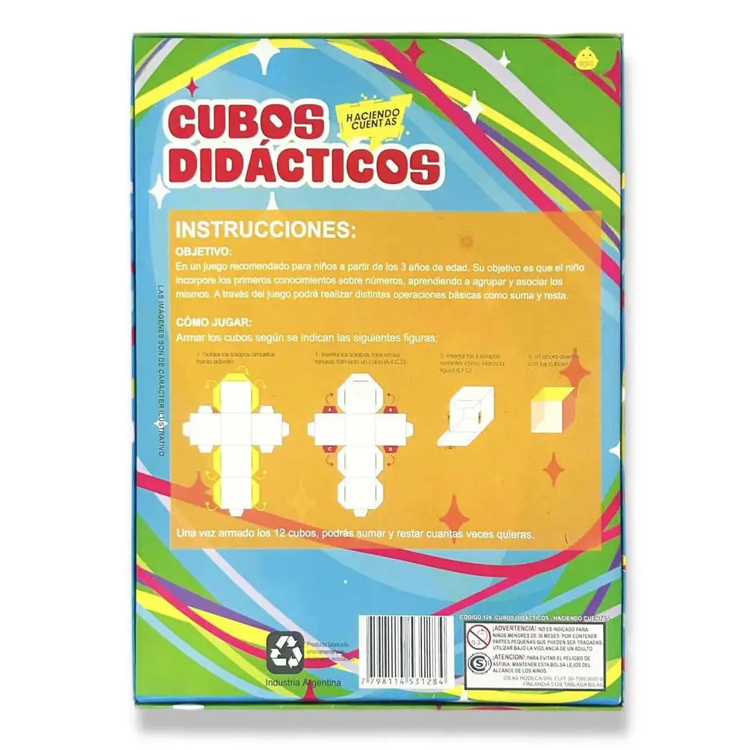 Este juego incluye cubos armables con números y signos matemáticos para que los niños experimenten creando operaciones simples.