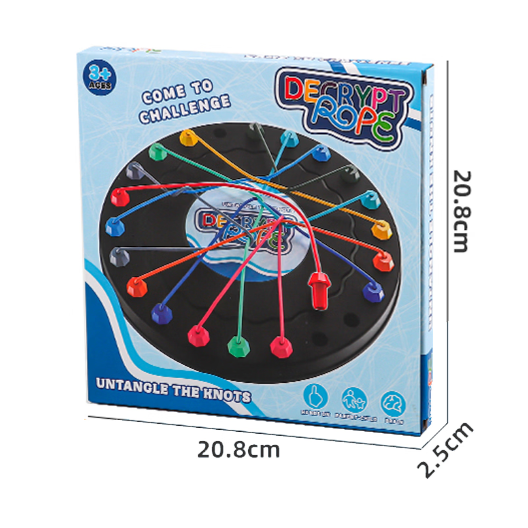 El objetivo es mover las piezas turno a turno hasta lograr desenredar todas las cuerdas, observando, pensando y probando diferentes estrategias.