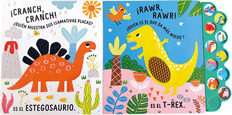 «Al ritmo de los dinos» es un libro interactivo ideal para los más pequeños. Con ilustraciones coloridas, texturas para tocar y suaves sonidos en cada página, invita a explorar el mundo de los dinosaurios a través del juego y la curiosidad.