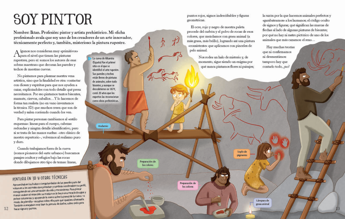 Este libro invita a conocer cómo vivían los primeros seres humanos: cómo cazaban, se vestían, se comunicaban y creaban sus herramientas.