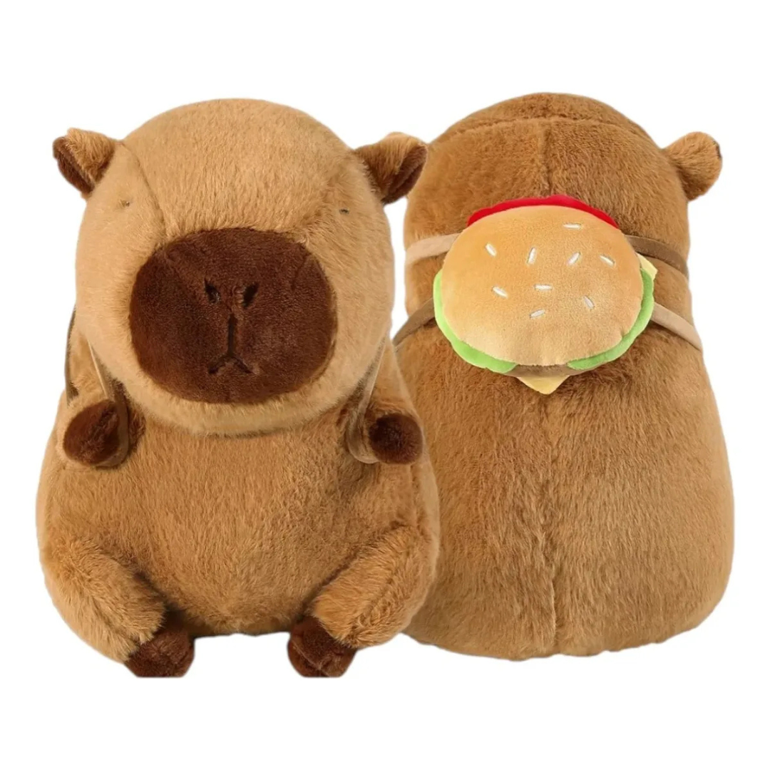 ¡El capibara más tierno y divertido ya está aquí! Este peluche de 40 cm es perfecto para acompañar a grandes y chicos con su estilo único y adorable. Suave al tacto y de excelente calidad, viene con un detalle que lo hace irresistible: una hamburguesa de felpa en la espalda, que le da un toque simpático y original.