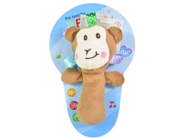 Este sonajero de peluche es liviano, fácil de sostener con sus pequeñas manos y emite un sonido tipo chifle al presionarlo, acompañando el juego con estímulos sensoriales suaves y agradables.