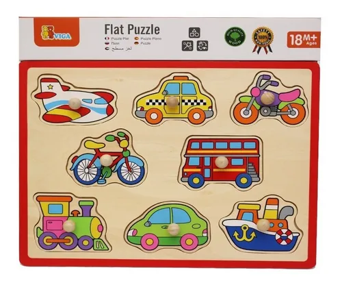 Este tablero incluye 8 vehículos con agarre de madera, perfectos para que las manos pequeñas puedan manipularlos con facilidad.